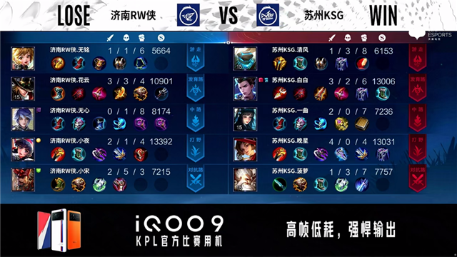 3分31秒,济南RW侠控下暴君,随后苏州KSG控下先知主宰。4分37秒,济南RW侠破掉苏州KSG下一塔。5分45秒,济南RW侠破掉苏州KSG上一塔。7分48秒,苏州KSG控下暴君,随后济南RW侠控下先知主宰。10分37秒,济南RW侠李元芳抢到暗影暴君,随后团战济南RW侠打出1换3。11分03秒,济南RW侠破掉苏州KSG中路两座外塔。11分23秒,济南RW侠破掉苏州KSG下高地。12分54秒,济南RW侠击杀盘古。13分25秒,中路团战双方1换1,随后破掉苏州KSG中高地。15分37秒,济南RW侠控下暗影主宰。15分40秒,双方团战1换1。18分47秒,济南RW侠控下暗影主宰。19分12秒,济南RW侠控下暗影暴君。23分10秒,济南RW侠控下风暴龙王,随后团战济南RW侠打出1换4,李元芳拿下三杀。23分53秒,济南RW侠摧毁苏州KSG水晶赢下比赛。
