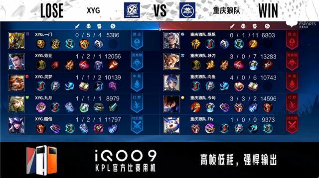 重庆狼队开局边路换线。1分05秒XYG野区击杀裴擒虎拿到一血。2分12秒XYG拿下暴君。3分39秒XYG对抗路击杀李元芳。3分57秒XYG对抗路击杀嬴政。4分04秒重庆狼队发育路击杀东皇太一。4分14秒XYG拿下主宰。5分06秒双方发育路1换1。5分40秒重庆狼队摧毁敌方发育路外塔。6分30秒XYG拿下暴君。6分48秒重庆狼队摧毁敌方对抗路外塔。7分12秒XYG摧毁敌方中路外塔。8分28秒中路团战XYG打出0换3。6分56秒XYG摧毁敌方中路二塔。10分10秒XYG拿下暗影暴君。10分52秒XYG拿下暗影主宰。13分55秒XYG拿下暗影暴君。14分44秒XYG拿下暗影主宰。15分36秒XYG摧毁敌方中路高地塔。17分10秒对抗路团战XYG打出0换2。18分36秒XYG拿下暗影主宰。19分11秒XYG摧毁敌方发育路高地塔。19分48秒XYG摧毁敌方对抗路高地塔。21分05秒XYG拿下风暴龙王。22分03秒XYG摧毁敌方水晶拿下比赛。