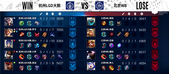 杭州LGD大鹅禁用:镜、大乔、关羽、狄仁杰