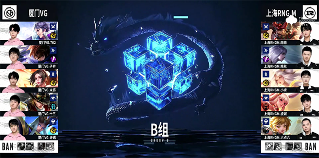 双方和平开局。2分40秒赵云拿下主宰。5分09秒虞姬推掉下路一塔。5分20秒中路团战,厦门VG打出3换4,貂蝉拿下一血。6分40秒双方互换边路一塔。7分10秒中路团战,上官婉儿被击杀。7分50秒关羽被击杀。8分17秒阿古朵被击杀,上海RNG.M推掉中路一塔。11分20秒河道团战,厦门VG打出1换3。11分56秒李元芳拿下主宰。13分钟阿古朵推掉下路二塔。13分15秒李元芳推掉中路一塔。14分15秒阿古朵拿下暴君。16分10秒河道团战,上海RNG.M打出1换2。17分40秒野区团战,厦门VG团灭上海RNG.M,貂蝉拿下五杀。18分33秒厦门VG推掉水晶拿下本场比赛胜利。
