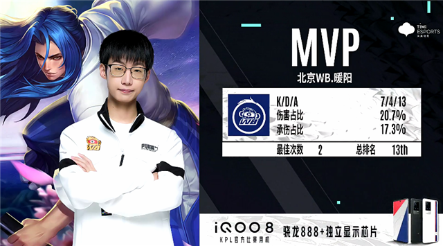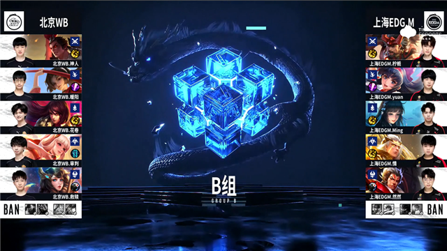 双方和平开局。2分钟北京WB下路越塔强攻,公孙离拿下一血。2分47秒云缨拿下暴君。4分39秒上海EDG.M上路一塔被破。5分钟北京WB入侵野区,廉颇被击杀。5分20秒公孙离推掉下路一塔。6分36秒上海EDG.M中路一塔被破。7分11秒中路团战,北京WB打出0换2并推掉中路二塔。7分51秒周瑜推掉下路高地塔。8分10秒上海EDG.M上路二塔被破。9分40秒北京WB推掉上路高地塔,团战打出2换3。10分22秒北京WB推掉水晶拿下本场比赛胜利。