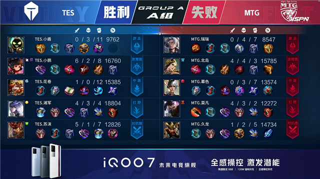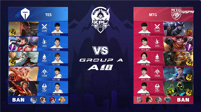 开局MTG公孙离中路抢线。1分01秒MTG下路击杀狄仁杰拿到一血。1分09秒MTG拿下中路河道之灵。1分57秒MTG下路击杀大乔。2分19秒TES拿下主宰。3分43秒TES下路击杀盾山。4分03秒TES击杀廉颇并抢到暴君。4分43秒TES野区击杀上官婉儿。5分08秒TES摧毁敌方上路外塔。5分29秒中路团战MTG打出1换2。6分43秒MTG野区击杀大乔。7分34秒TES拿下主宰。8分11秒中路团战TES打出0换3。8分22秒TES摧毁敌方中路外塔。8分30秒TES摧毁敌方中路二塔。10分17秒暴君处团战TES打出2换3。10分43秒TES摧毁敌方中路高地塔。11分30秒中路团战TES打出0换5。11分55秒TES摧毁敌方水晶拿下比赛。