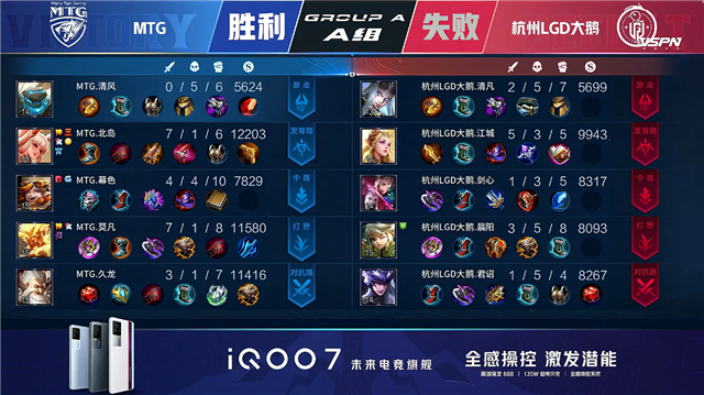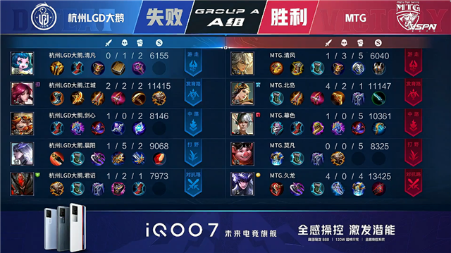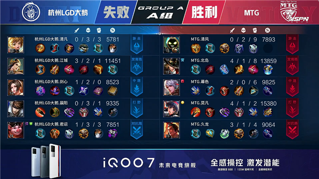 开局MTG射手中路抢线。4分06秒MTG上路打出0换2,杭州LGD大鹅中路击杀牛魔。4分40秒双方暴君处打出1换1。6分53秒MTG拿下暴君。7分24秒杭州LGD大鹅野区击杀不知火舞。7分52秒杭州LGD大鹅中路打出0换2。7分56秒杭州LGD大鹅上路击杀刘邦。8分17秒杭州LGD大鹅摧毁敌方中路外塔。11分22秒上路团战MTG打出4换5。13分36秒MTG拿下暗影暴君。14分30秒中路团战杭州LGD大鹅打出0换3。14分59秒杭州LGD大鹅摧毁敌方中路二塔。15分18秒杭州LGD大鹅拿下暗影主宰。17分03秒杭州LGD大鹅上路击杀刘邦。17分17秒杭州LGD大鹅摧毁敌方上路二塔,MTG摧毁敌方下路二塔。17分35秒杭州LGD大鹅摧毁敌方上路高地塔。17分49秒杭州LGD大鹅野区击杀镜。18分20秒杭州LGD大鹅摧毁敌方中路高地塔,MTG击杀吕布。18分51秒杭州LGD大鹅中路击杀不知火舞。19分01秒杭州LGD大鹅上路兰陵王单杀刘邦。19分39秒杭州LGD大鹅摧毁敌方水晶拿下比赛。