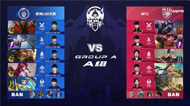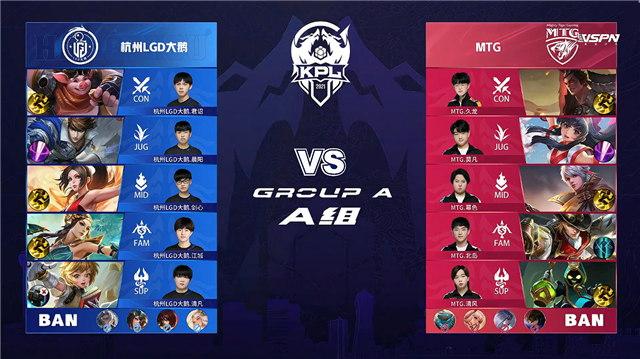 杭州LGD大鹅禁用:鲁班大师、关羽、兰陵王、橘右京