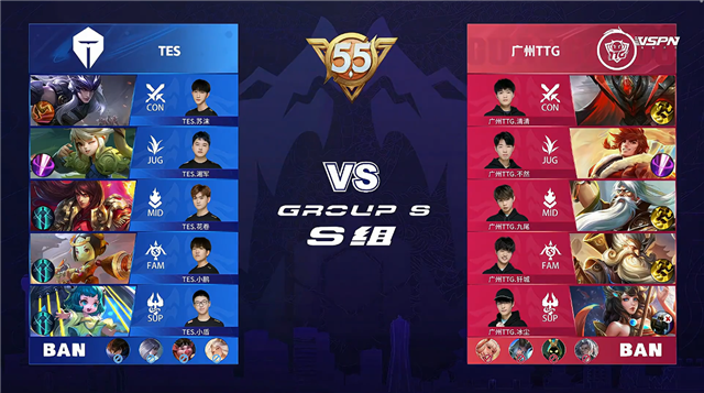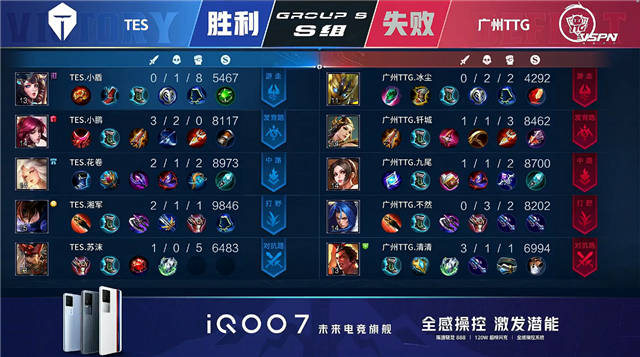 开局广州TTG击杀橘右京拿到一血。2分17秒TES拿下暴君。2分42秒野区团战TES击杀橘右京。4分07秒TES摧毁敌方下路外塔。6分23秒TES摧毁敌方上路二塔。6分35秒上路团战广州TTG打出0换2,TES摧毁敌方上路高地塔。7分07秒广州TTG拿下暴君。8分13秒广州TTG野区击杀澜。8分29秒TES拿下主宰。10分06秒广州TTG中路击杀大乔。11分31秒TES拿下暗影暴君。11分52秒TES摧毁敌方下路二塔。12分09秒下路团战TES打出1换3。12分39秒TES团灭对手摧毁水晶拿下比赛。