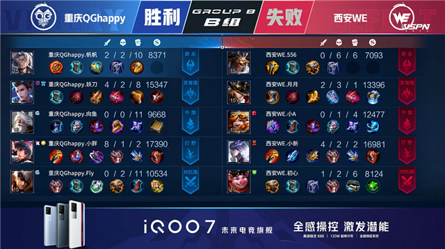 24直播网讯 4月30日2021KPL春季赛常规赛第六周第三日第一场比赛,由B组的重庆QGhappy对阵西安WE,以下是本场比赛快讯。