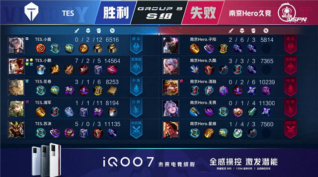 2分16秒,南京Hero拿下暴君。4分40秒,下路团,双方2换2,马可波罗拿下双杀。5分10秒,南京Hero破掉TES下一塔。7分07秒,南京Hero破掉TES中一塔。7分44秒,中路团,南京Hero击杀马可波罗。8分11秒,南京Hero破掉TES下二塔。9分48秒,TES拿下先知主宰。10分47秒,TES抢下暗影暴君,随后团战TES打出1换4,不知火舞与马可波罗拿下双杀。11分27秒,TES下路击杀墨子团灭对手,随后破掉南京Hero中路高地。12分28秒,TES不知火舞击杀澜,随后控下暗影主宰。15分09秒,TES拿下暗影暴君。16分12秒,TES破掉南京Hero上高地。16分35秒,南京Hero击杀盘古。17分20秒,南京Hero墨子击杀不知火舞。17分50秒,南京Hero拿下暗影主宰。19分27秒,南京Hero澜击杀太乙真人。19分58秒,TES中路反打打出1换4。20分35秒,TES破掉南京Hero水晶拿下胜利。