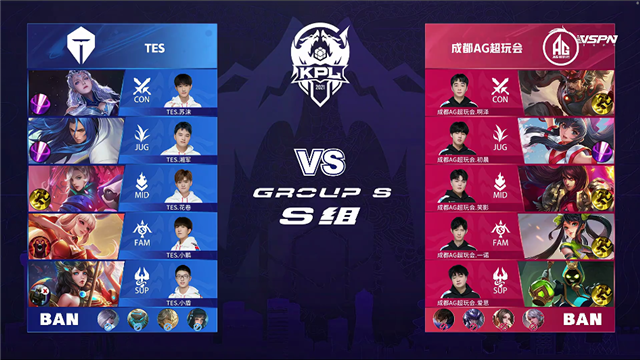 双方和平开局,2分23秒成都AG拿下第一条暴君,4分45秒成都AG拆掉TES下路一塔。5分59秒成都AG上路一塔被破,6分26秒成都AG拿下先知主宰,TES拿下暴君。7分钟中路团战TES打出2换3,拆掉成都AG中路一塔。8分30秒TES击杀成都AG橘右京,10分40秒中路团TES打出0换2,11分05秒TES拿下暗影暴君。12分20秒野区团成都AG击杀太乙真人,12分42秒成都AG拿下暗影主宰。13分16秒成都AG拆掉TES中路一塔,15分10秒野区团TES打出1换3,橘右京天秀击杀姜子牙后被镜击杀。17分钟TES拆掉成都AG上路二塔,17分21秒TES拿下暗影主宰,18分30秒成都AG牛魔被击杀。19分30秒成都AG三路二塔被破,20分34秒团战TES打出0换3,21分04秒TES拆掉成都AG下路高地,成都AG无力防守被一波拆掉水晶。