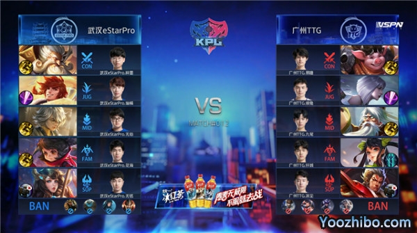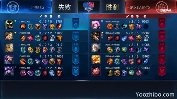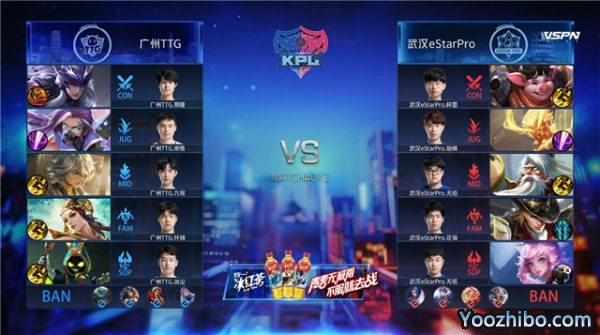 双方开局没有选择野区入侵。1分05秒武汉eStar野区击杀孙膑,关羽拿到一血。2分219秒广州TTG拿下暴君,武汉eStar拿下先知主宰。3分23秒广州TTG拿到中路河道之灵。4分08秒武汉eStar下路击杀沈梦溪。5分09秒武汉eStar摧毁敌方下路外塔。6分16秒广州TTG摧毁敌方下路外塔。6分34秒武汉eStar拿下暴君。8分05秒武汉eStar野区击杀廉颇。8分24秒双方暴君处1换1。9分28秒中路团战武汉eStar击杀赵云。10分07秒中路团战广州TTG打出1换2并摧毁敌方中路外塔。10分56秒暴君处团战广州TTG打出1换2。12分31秒中路团战广州TTG击杀太乙真人。13分13秒中路团战广州TTG击杀周瑜。15分20秒野区团战广州TTG打出1换3。19分35秒野区团战双方1换1。20分11秒野区团战广州TTG打出0换3。20分53秒广州TTG摧毁水晶拿下比赛。