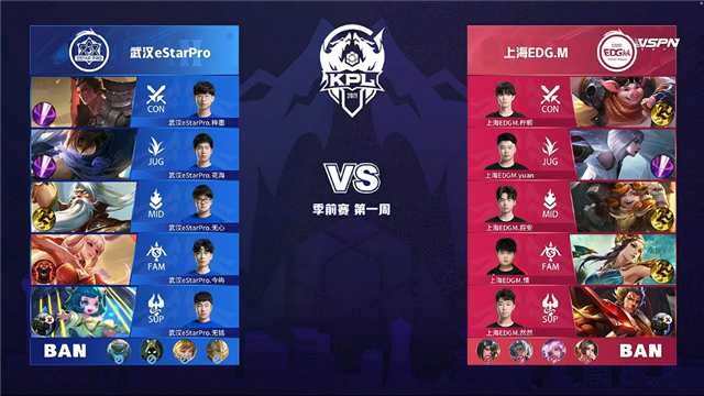 24直播网 3月12日2021KPL春季赛季前赛第一周第二日比赛,由武汉eStarPro对阵上海EDG.M,以下是本场比赛快讯。