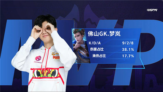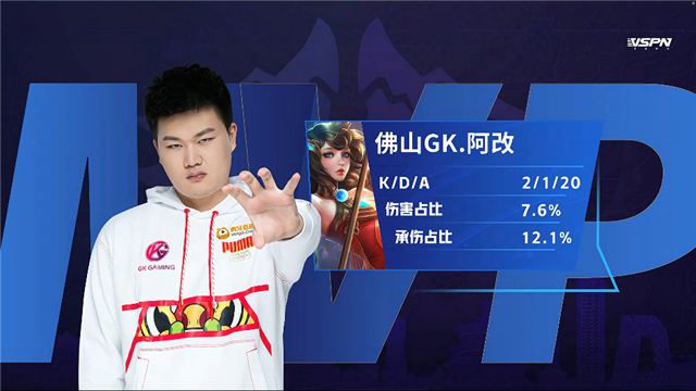 开局佛山GK入侵RW侠红区三Buff开局,2分15秒团战佛山GK周瑜击杀镜拿下一血,打出0换2,3分钟佛山GK拿下第一条暴君。3分45秒佛山GK击杀吕布,4分09秒RW侠中路一塔被破。5分钟下路团双方1换1,6分钟团战粉丝GK打出0换2,6分30秒佛山GK拆掉RW侠上路二塔。7分40秒中路团佛山GK打出0换2,拆掉RW侠中路二塔,8分28秒佛山GK下路二塔被拆。10分07秒中路团佛山GK击杀吕布,10分28秒RW侠上路高地被拆。10分50秒佛山GK拿下暗影暴君,11分39秒中路团佛山GK打出1换2,12分12秒佛山GK击杀镜。13分44秒中路团RW侠打出2换4,14分12秒RW侠拿下暗影主宰。16分06秒中路团佛山GK打出1换2,17分03秒团战佛山GK打出0换2。17分36秒中路团战爆发,佛山GK周瑜带领上路兵线独自一人拆掉RW侠水晶,拿下本局胜利。
