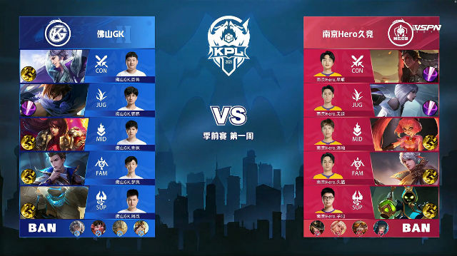 24直播网 3月11日2021KPL春季赛季前赛第一周第一日比赛,由南京Hero久竞对阵佛山GK,以下是本场比赛快讯。