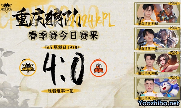 24直播网讯 北京时间5月5日晚,2024年KPL(王者荣耀职业联赛)春季赛季后赛胜者组第二场比赛,重庆狼队4比0横扫苏州KSG,晋级胜者组决赛,与成都AG超玩会会师。