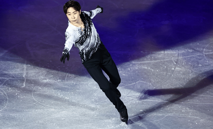 第1个登场的是来自美国的男子单人滑选手周知方,值得一提的是他因为确诊错过了参加北京冬奥会,这次参加表演滑,也是圆梦的过程。