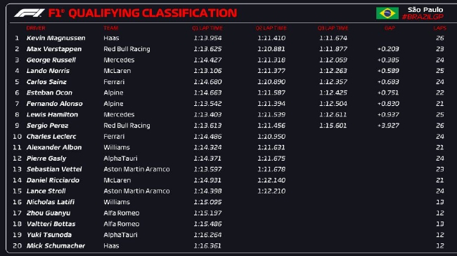 24直播网讯 2022年F1圣保罗大奖赛周五排位赛,马格努森取得职业生涯第一个杆位,他将在周六冲刺赛中从第一位发车!这也是哈斯车队的第一个杆位!