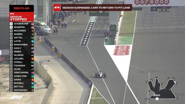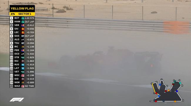 勒克莱尔在3号弯打滑冲入砂石地,但所幸并未发生严重事故,赛会短暂出动了黄旗。