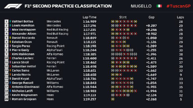 2020F1托斯卡纳站FP2成绩表: