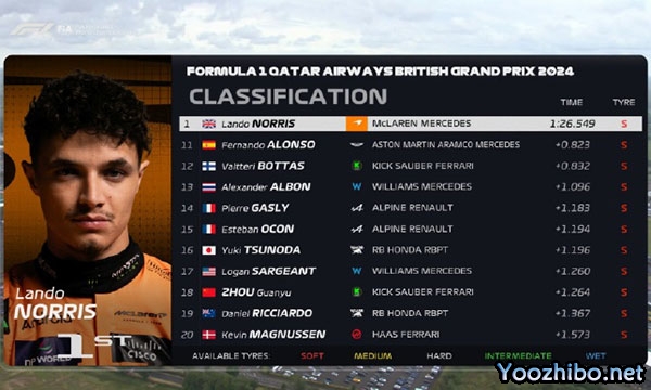 24直播网讯 北京时间7月5日的 F1 英国大奖赛第二次练习赛中,诺里斯表现出色,以1分27秒420的成绩做出全场软胎最快圈,获得二练头名。