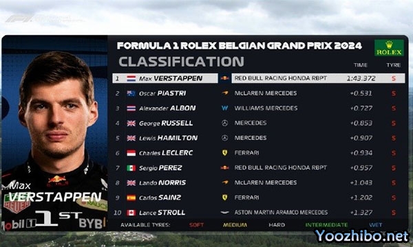 24直播网讯 北京时间7月26日讯 F1比利时大奖赛结束第一次练习赛争夺,维斯塔潘排名第一,迈凯伦车手皮亚斯特里排名第二,阿尔本练习赛发挥出色,排名一练第三名。
