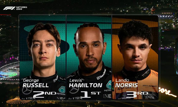 梅赛德斯车队:刘易斯・汉密尔顿以1分35秒001的成绩夺得练习赛第一名。他的队友乔治・拉塞尔紧随其后,落后0.396秒位居第二。