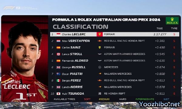 24直播网讯 北京时间03月22日,2024F1澳大利亚大奖赛第二次练习赛,勒克莱尔1:17.277收获周五最快单圈,维斯塔潘落后0.381秒!明天的排位赛会有悬念吗?