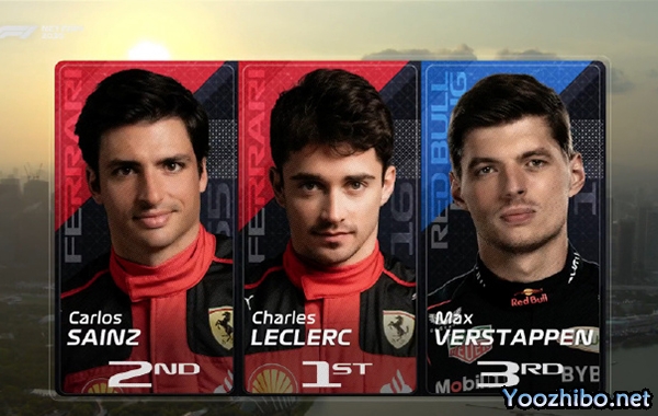 24直播网讯 北京时间09月15日,2023F1新加坡大奖赛第一次练习赛,法拉利包揽一练前两名,勒克莱尔1:33.350取得头名,塞恩斯单圈落后0.078秒。维斯塔潘第三,与勒克莱尔软胎单圈相差0.126秒。