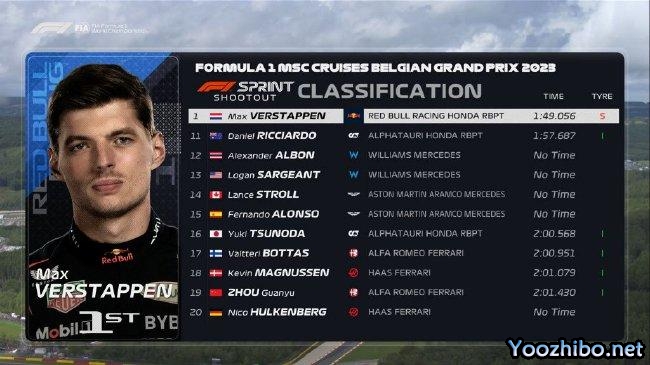 24直播网讯 2023年F1比利时大奖赛冲刺赛排位赛结束,红牛车队维斯塔潘以0.011秒的优势战胜迈凯伦皮亚斯特里,收获冲刺赛杆位!皮亚斯特里第二,职业生涯首次头排发车;法拉利车队塞恩斯排名第三,前三名之间的差距只有0.025秒!