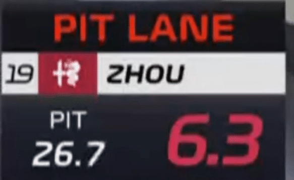 正赛阶段最后一个发车的周冠宇想要获得积分很难,但也并非没有机会,遗憾的是第33圈,周冠宇进站换胎用了6.3秒。本来有机会排在角田前面,但可惜车队的换胎时间太慢了,直接影响到周冠宇的比赛。