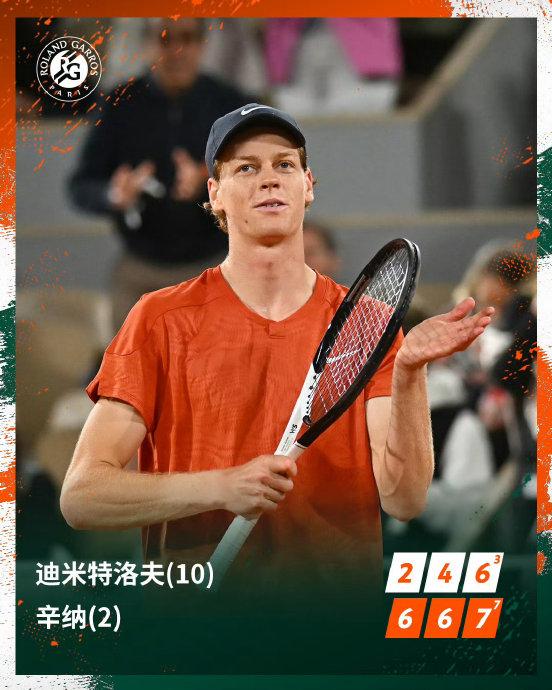 24直播网讯 6月4日讯 在刚刚结束的法网男单1/4决赛中,赛会2号种子辛纳直落三盘迪米特洛夫,晋级法网男单4强。