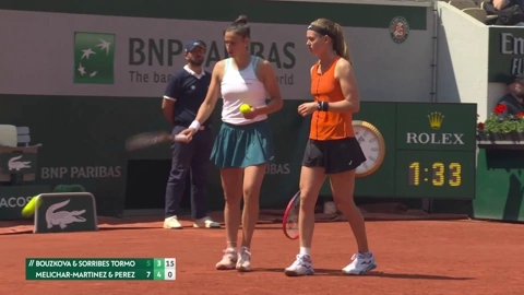 24直播网讯 北京时间06月07日 2023法网女双1/4决赛,6号种子梅里查尔/佩雷兹以7-5 6-3击败布兹科娃/托莫,率先晋级四强。接下来,她们将静候王欣瑜/谢淑薇和库德梅托娃/萨姆索诺娃之间的胜者。