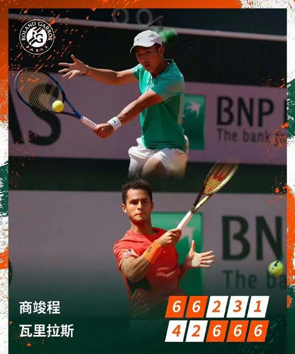 24直播网讯 北京时间5月29日晚,2023年法国网球公开赛继续进行。男单赛场迎来一场焦点大战,中国小将商竣程与巴里亚斯狭路相逢。最终,经过五盘大战,商竣程在大比分2-0领先的情况下连丢三盘,以2-3惨遭对手逆转,遗憾止步首轮。