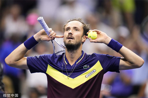 首盘,双方前12局各自保下发球局,比赛被拖入抢七。抢七局梅德韦杰夫在3-3之后连得4分,7-3赢下了第一盘抢七的胜利。