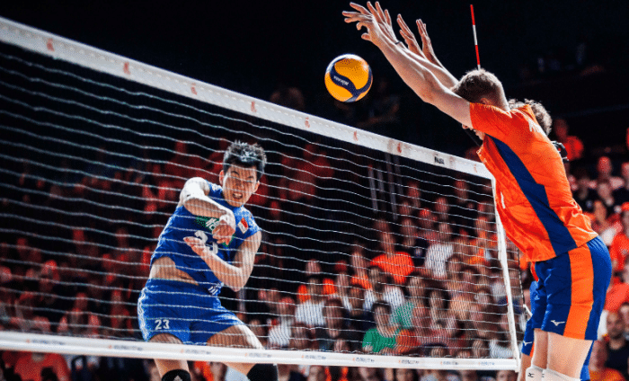 24直播网06月21日讯 2023年世界男排联赛第二站荷兰鹿特丹站,中国男排以0-3输给荷兰队,双方之间的实力差距很明显,中国男排全场多达25次失误,张景胤拿到15分,但进攻端的效率一般。江川只有6分入账,输掉这场比赛的之后的中国男排吃到4连败,排名倒数第一。