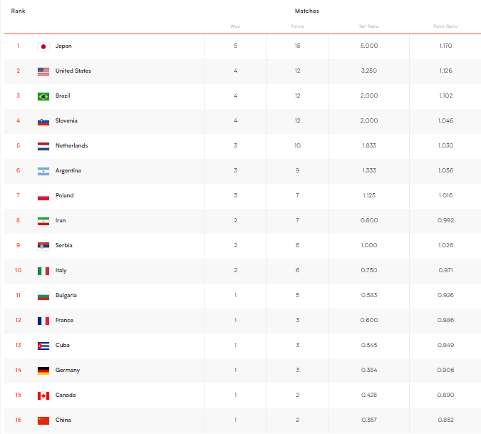 这样中国男排的战绩来到1胜4负,积2分,继续排名倒数第一。本届世联赛至今,中国男排除了首战以3-2险胜保加利亚之外,其他的比赛全部都是0-3或者1-3输球,没有拿过到积分。要知道世联赛开始前,不少人表示只要首战击败保加利亚,保级的可能性就很大,毕竟保加利亚是中国队的头号竞争对手,但可惜中国男排虽然赢了对手,但后期的表现很乏力。
