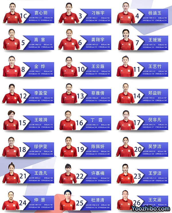 副攻:袁心玥、杨涵玉、高意、王媛媛、郑益昕、王文涵