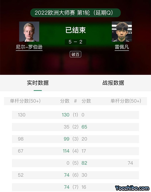 本场比赛第一局,罗伯逊一上来就展示出了火爆的进攻手感,他轰出单杆130分,130-0零封雷佩凡,1-0强势开局。