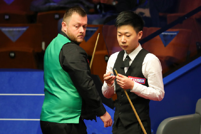 24直播网讯 北京时间4月21日凌晨,斯诺克世锦赛第一轮,中国新星吕昊天与马克艾伦的第二阶段决战打响!第一阶段,吕昊天2-7大幅落后于马克艾伦。第二阶段,吕昊天依旧毫无起色,连输3局之后,2-10惨败出局,遭遇一轮游!