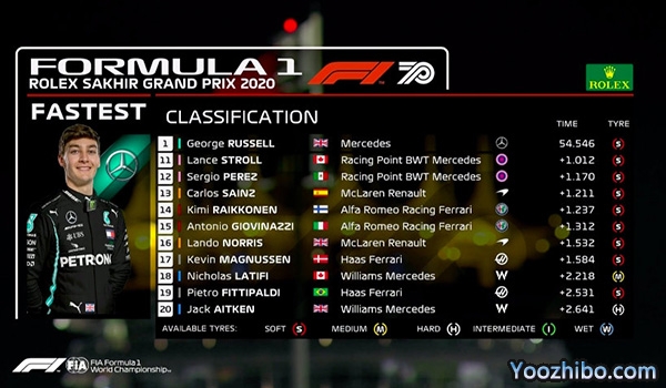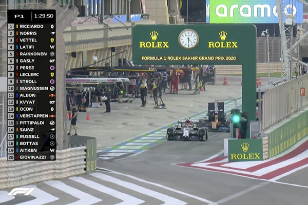 [腾讯] 2020F1萨基尔大奖赛第一次练习赛 车手位置