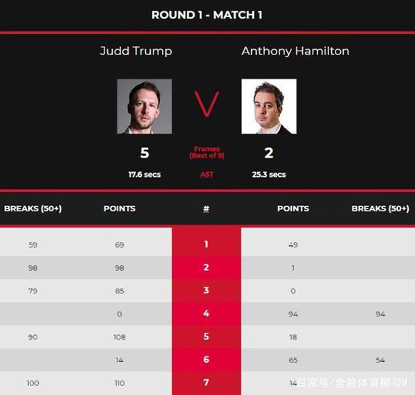 第六局,绝境下的汉密尔顿顽强反击,他打出单杆54分,65-14挽救一个赛点,比分追成4-2。第七局,特鲁姆普轰出单杆100分,110-14锁定胜局,总比分5-2战胜汉密尔顿,迎来本次比赛开门红!