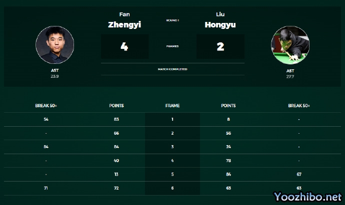 24直播网讯 北京时间2023年10月17日晚间,斯诺克北爱尔兰公开赛资格赛的一场揭幕战结束,范争一4–2战胜了刘宏宇,成功晋级64强。
