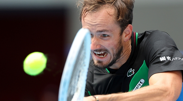 24直播网讯 10月2日,2023年中国网球公开赛男子单打1/4决赛在北京举行,俄罗斯选手梅德韦杰夫2比1战胜法国选手安贝尔,晋级半决赛。图为梅德韦杰夫在比赛中。