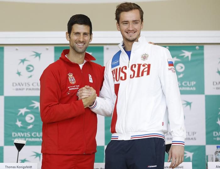 近年来,俄罗斯男子网球大有崛起之势。在前三十中有四名球员,在前五中更有两名球员,这种配备是其他国家可望而不可即的。在过去一个赛季进步神速的梅德韦杰夫,在打出大量优异成绩的同时,他也面临着和德约一样的问题。在年终总决赛卫冕失败后,梅德韦杰夫在接受媒体采访时曾透露个人很疲劳,但他也表示会尽自己最大的力量帮助俄罗斯赢得戴维斯杯冠军。世界前两名球员类似的豪言壮语,却面临着迥异的现实。梅德韦杰夫虽然也很疲劳,但是他的队友给力,很多时候甚至直接单打就会决定胜利,这减轻了他不少的压力。