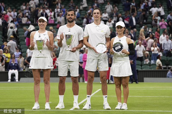 24直播网讯 北京时间7月14日凌晨,温网混双决赛展开争夺,对阵双方分别是中国金花徐一璠/弗利根以及7号种子帕维奇/基切诺克。本场比赛双方激战三盘,徐一璠在自己的第3次大满贯决赛仍未能取得突破,遗憾收获亚军。