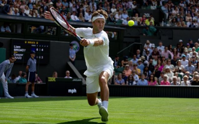 24直播网讯 北京时间7月7日,2023温网男单次轮,世界排名142位的本土球员布罗迪经过五盘大战后,以6比4、3比6、4比6、6比3、6比0力克4号种子鲁德,闯入第三轮。
