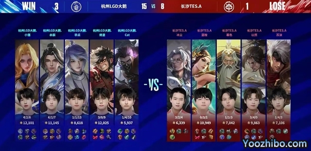 恭喜杭州LGD大鹅以3-1的战绩击败了长沙TES.A赢下了比赛胜利。