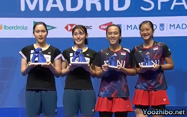 24直播网讯北京时间3月31日,2024西班牙羽毛球大师赛女双决赛岩永铃/中西贵映vs库苏马/阿玛莉亚,岩永铃/中西贵映以2-1击败库苏马/阿玛莉亚,夺得冠军!比分为12-21、21-8、21-16。