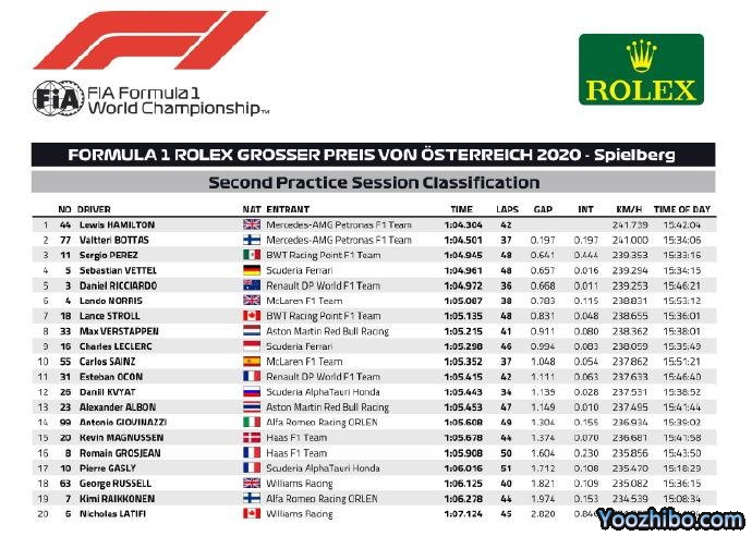 2020F1奥地利站FP2成绩2020F1奥地利站FP2成绩