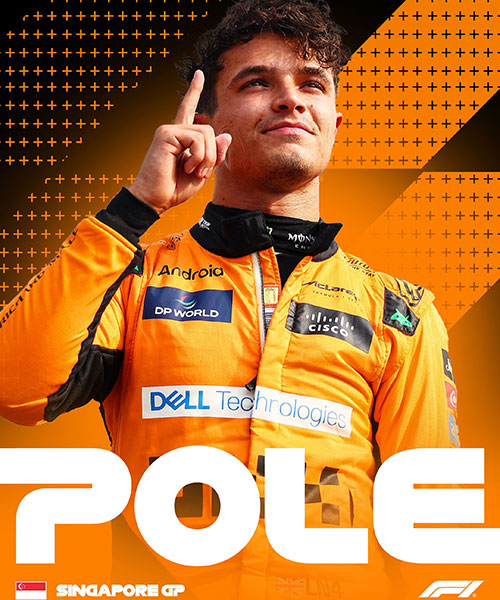 24直播网讯 北京时间09月21日,F1新加坡大奖赛排位赛,最终诺里斯杆位,维斯塔潘第2,勒克莱尔Q3最后时刻成绩被取消第9,塞恩斯撞墙引发红旗,索伯双车垫底,周冠宇第20。