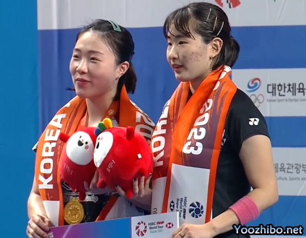 24直播网讯北京时间11月12日,2023韩国羽毛球大师赛女双决赛广上瑠依/加藤佑奈vs郑那银/金慧贞 。郑那银/金慧贞以2-0击败广上瑠依/加藤佑奈,获得冠军。比分为21-12、21-19。