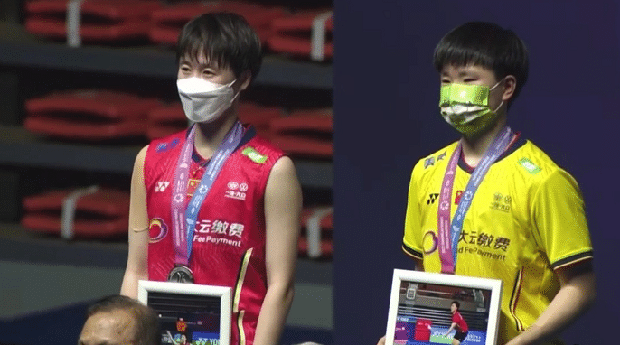这是比赛结束之后,冠军何冰娇和亚军陈雨菲参加颁奖仪式,两人得到奖牌,同时还有个人赛场美照,也就是两人本次参加比赛,被拍摄下来的一张照片,洗出来之后装进相框,这就是冠亚军的礼物,被认为是太寒酸了。